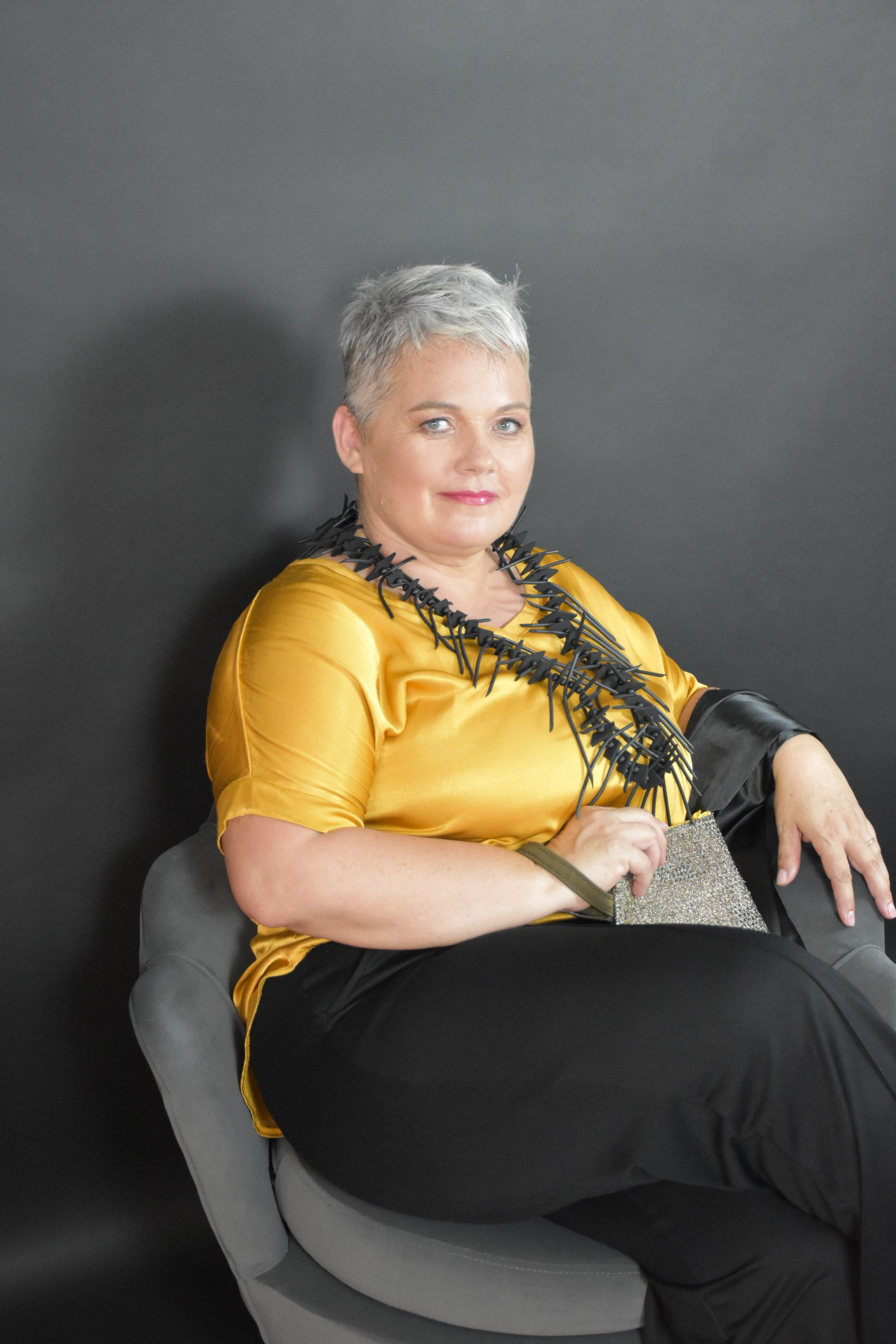 Punto di forza: il mix vincente tra il caldo oro della blusa e la profondità del nero, arricchito da accessori di carattere.