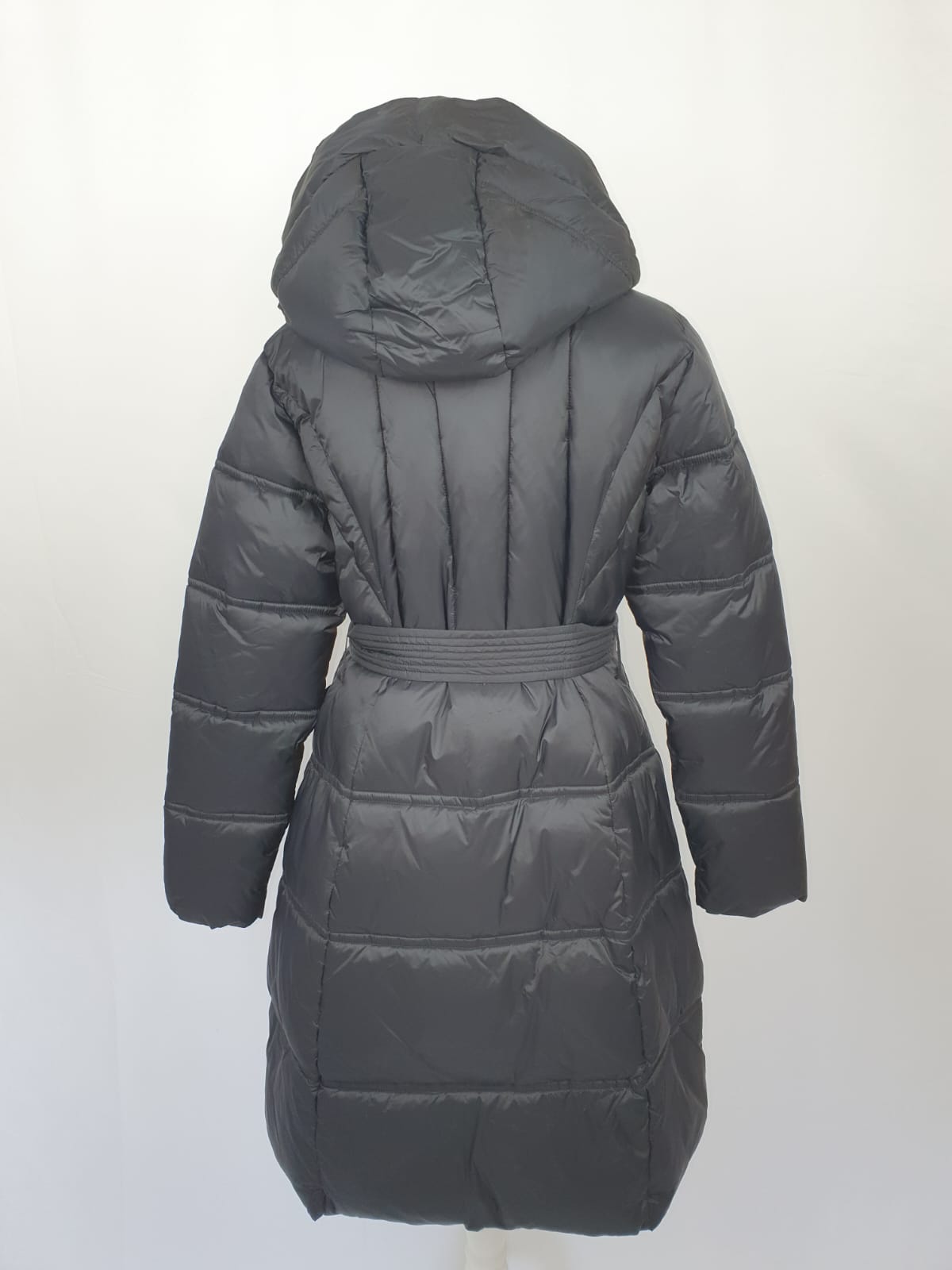 Design: Cappuccio avvolgente, cintura in vita, chiusura con zip e bottoni