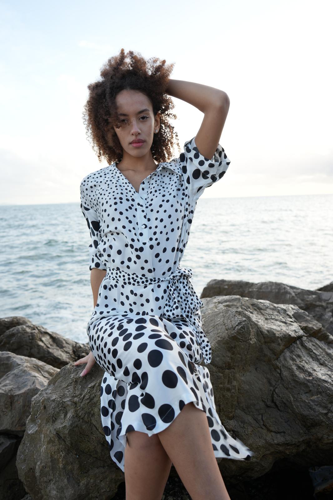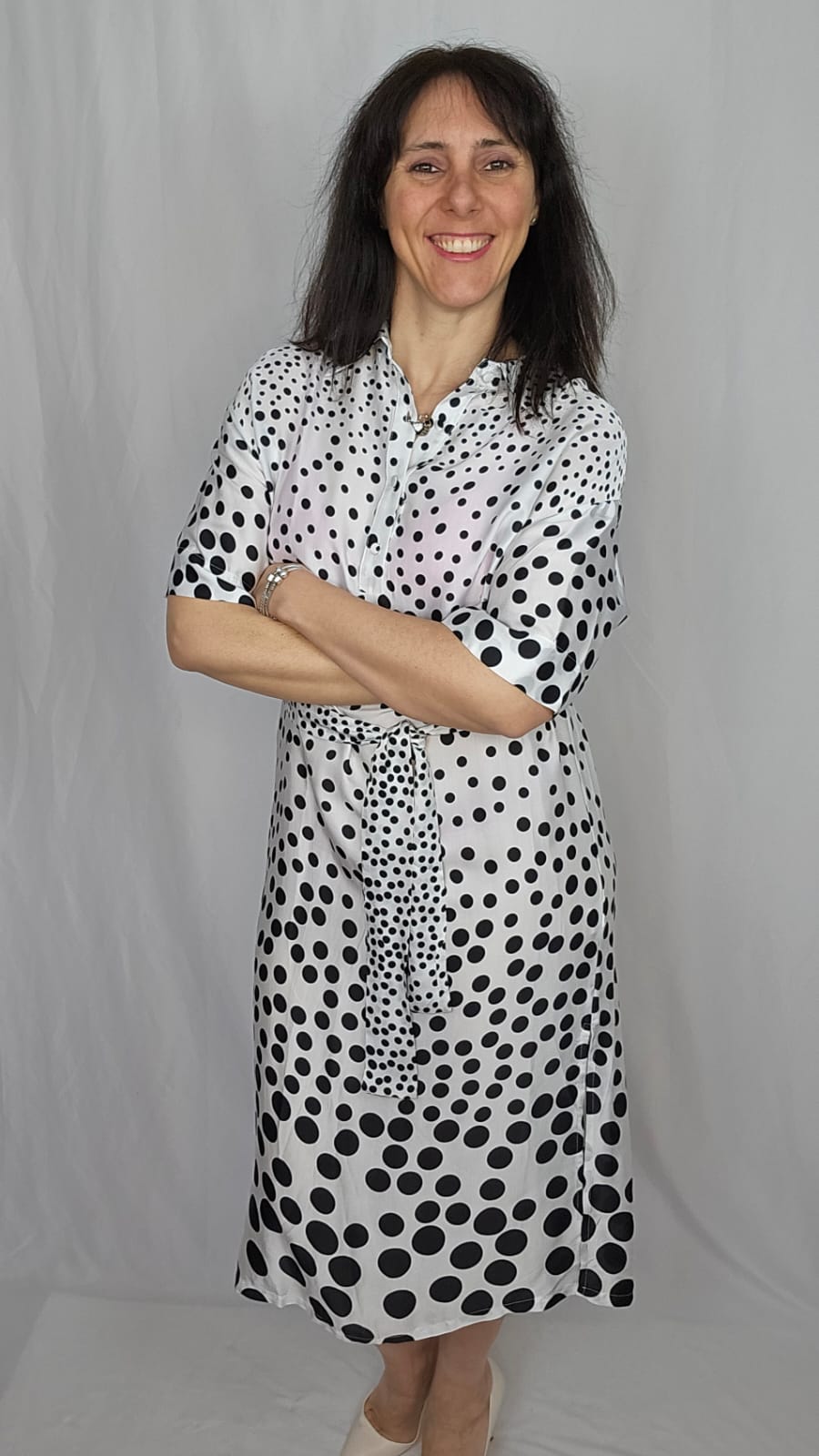 Un abito chemisier a pois che unisce stile e raffinatezza. Perfetto per un look chic e sofisticato, ideale per ogni occasione!