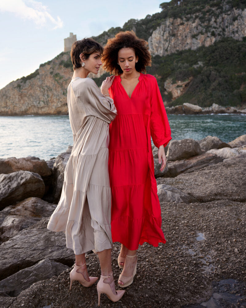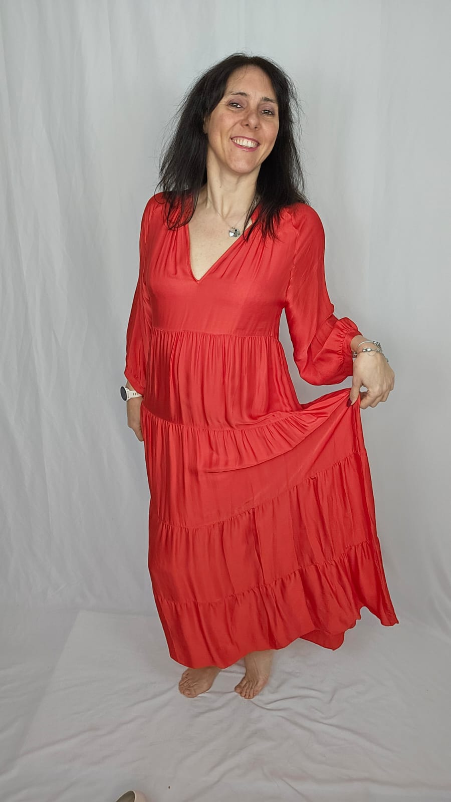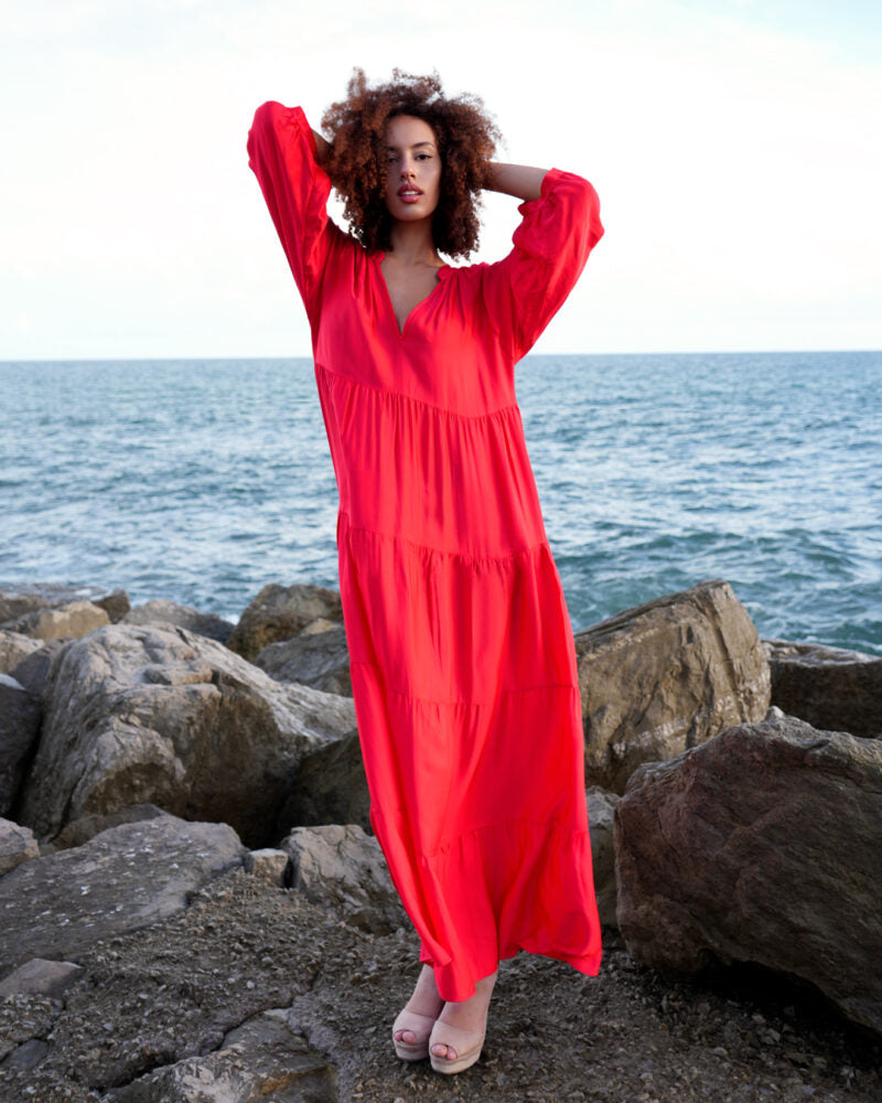 Un abito fluido e leggero, perfetto per ogni occasione. Lasciati avvolgere dal colore vibrante e dal design femminile che valorizza ogni silhouette!