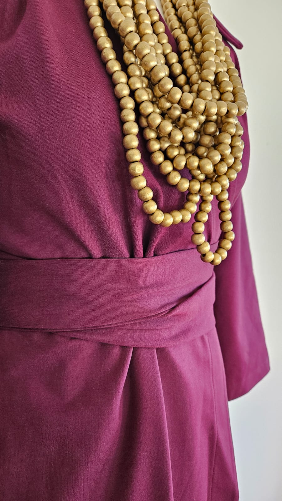 Scopri il fascino del nostro abito bordeaux con cintura in vita e taglio asimmetrico, perfetto per ogni occasione! 💃🏻